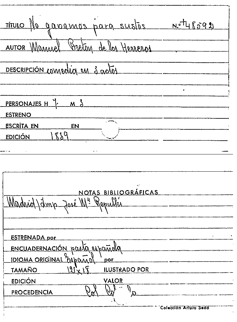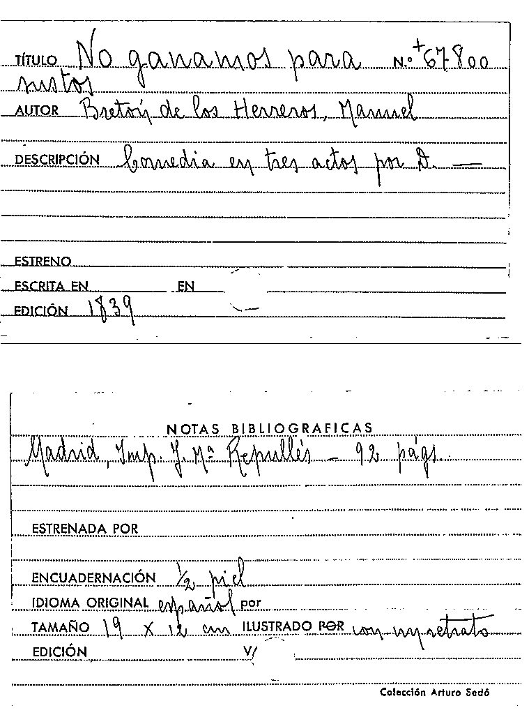 No ganamos para sustos / Manuel Bretón de los Herreros by