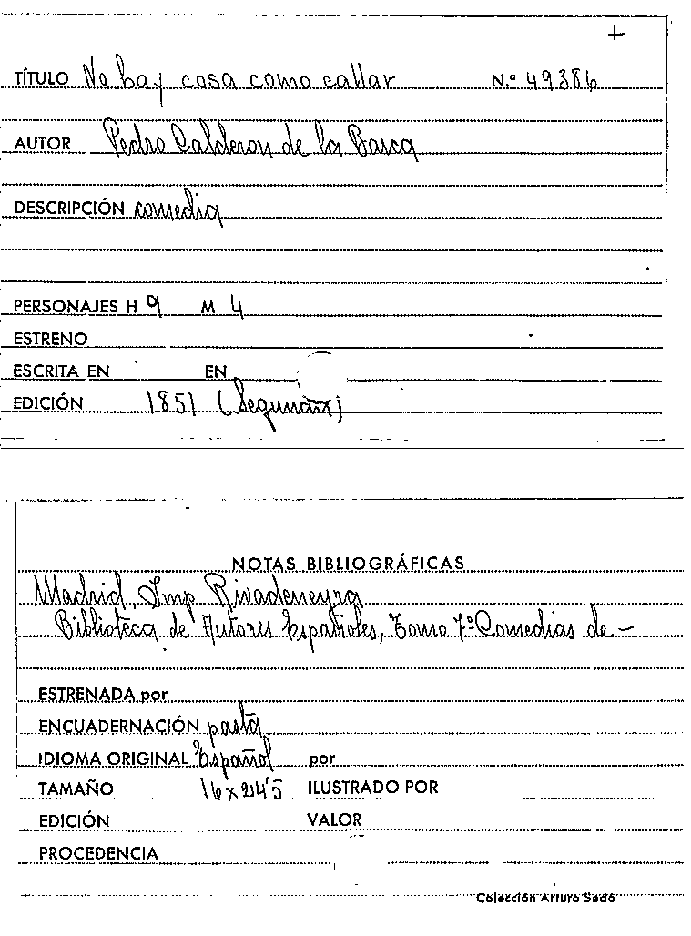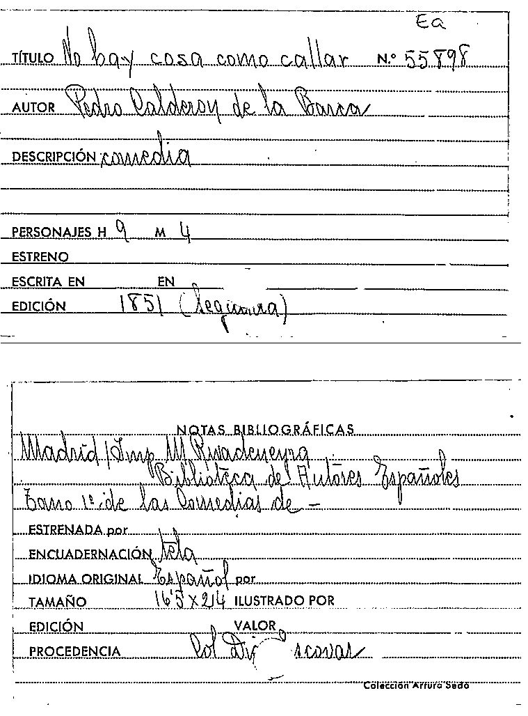 No hay cosa como callar / Pedro Calderón de la Barca by