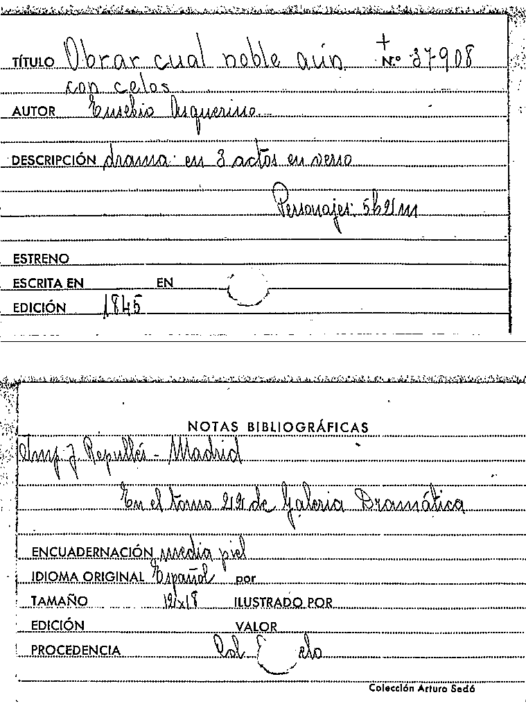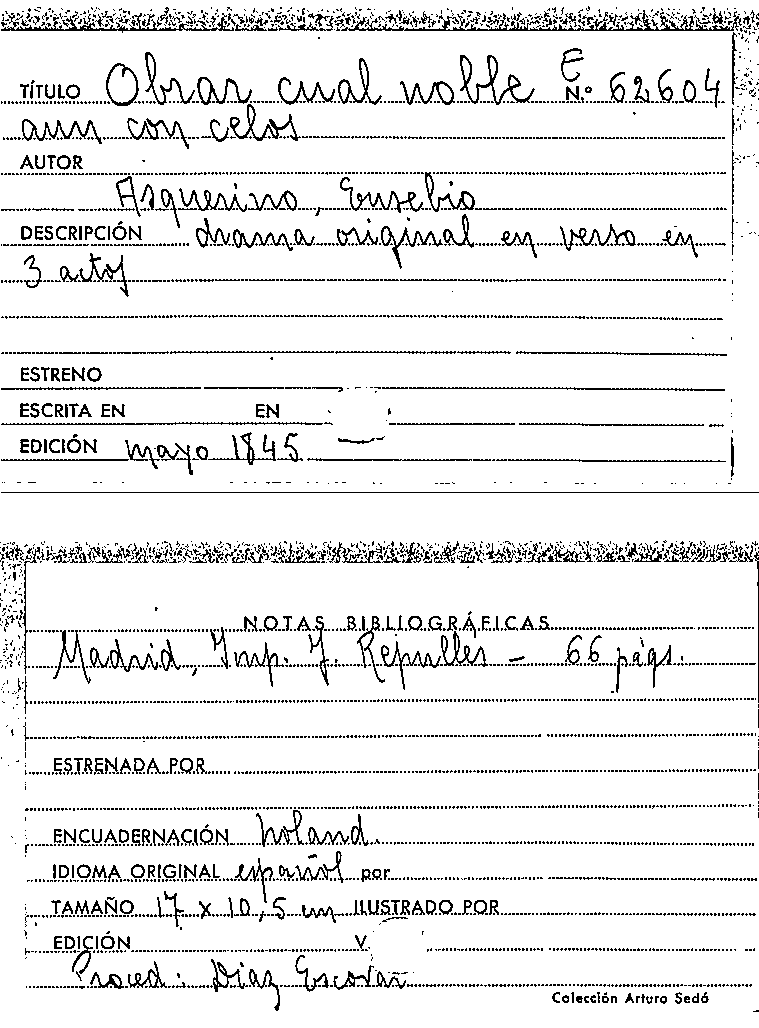 Obrar cual noble aun con celos / Eusebio Asquerino by