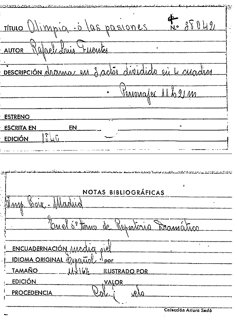 Olimpia, o, Las Pasiones / Rafael Luis Fuentes by