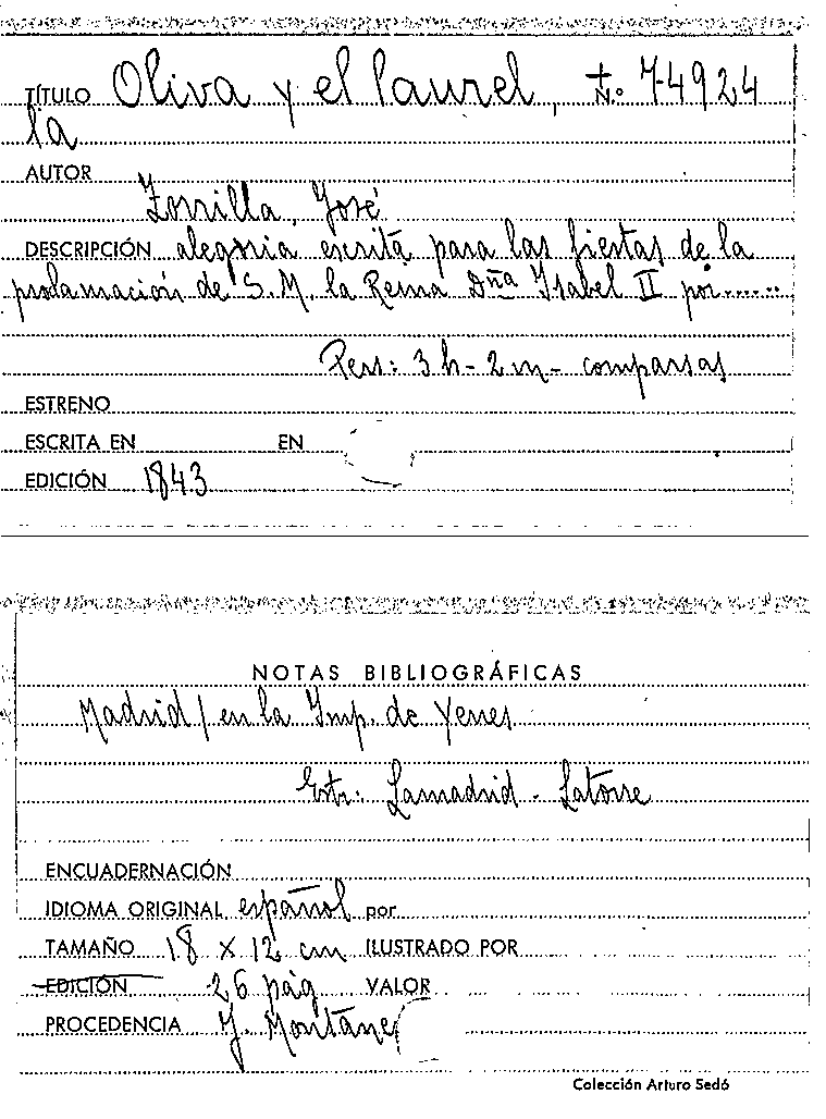 La Oliva y el laurel / José Zorrilla y Moral by