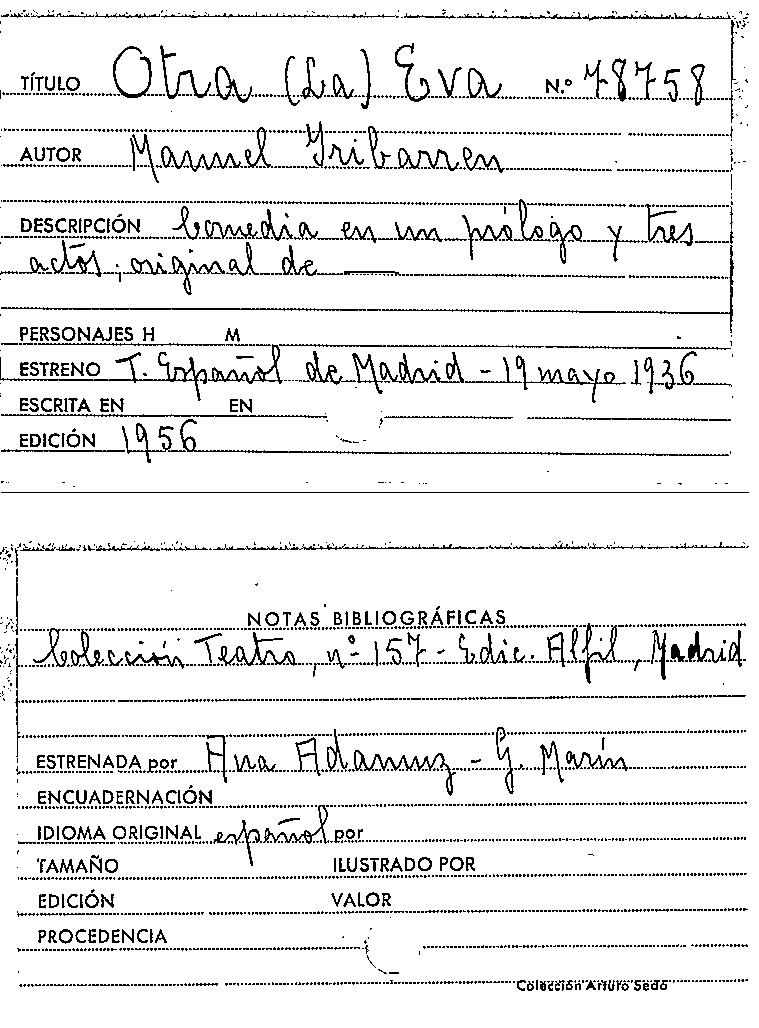 La Otra Eva / Manuel Iribarren by Series: Colección teatro (1951) ; 157