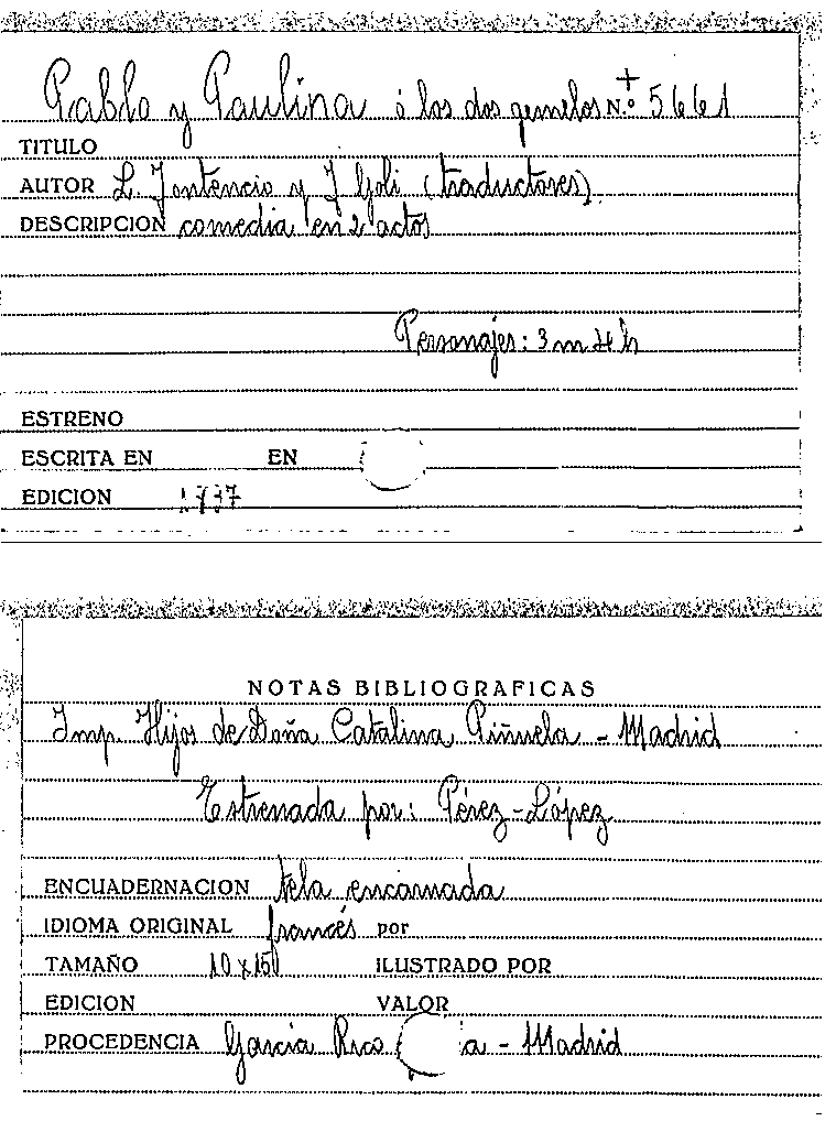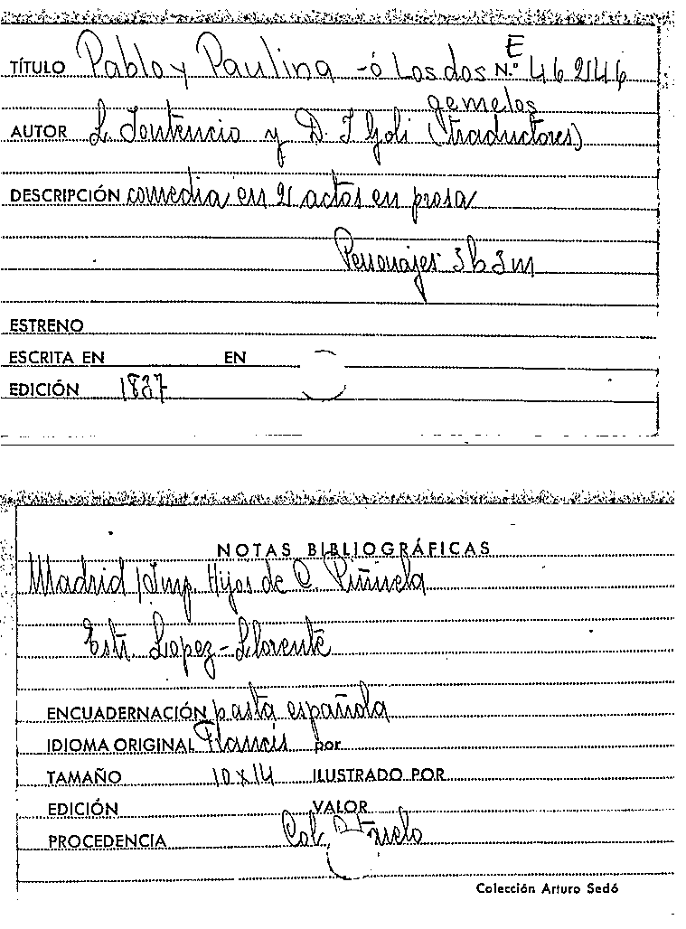 Pablo y Paulina, o, Los Dos gemelos / L. Jontecio , J. Goli by