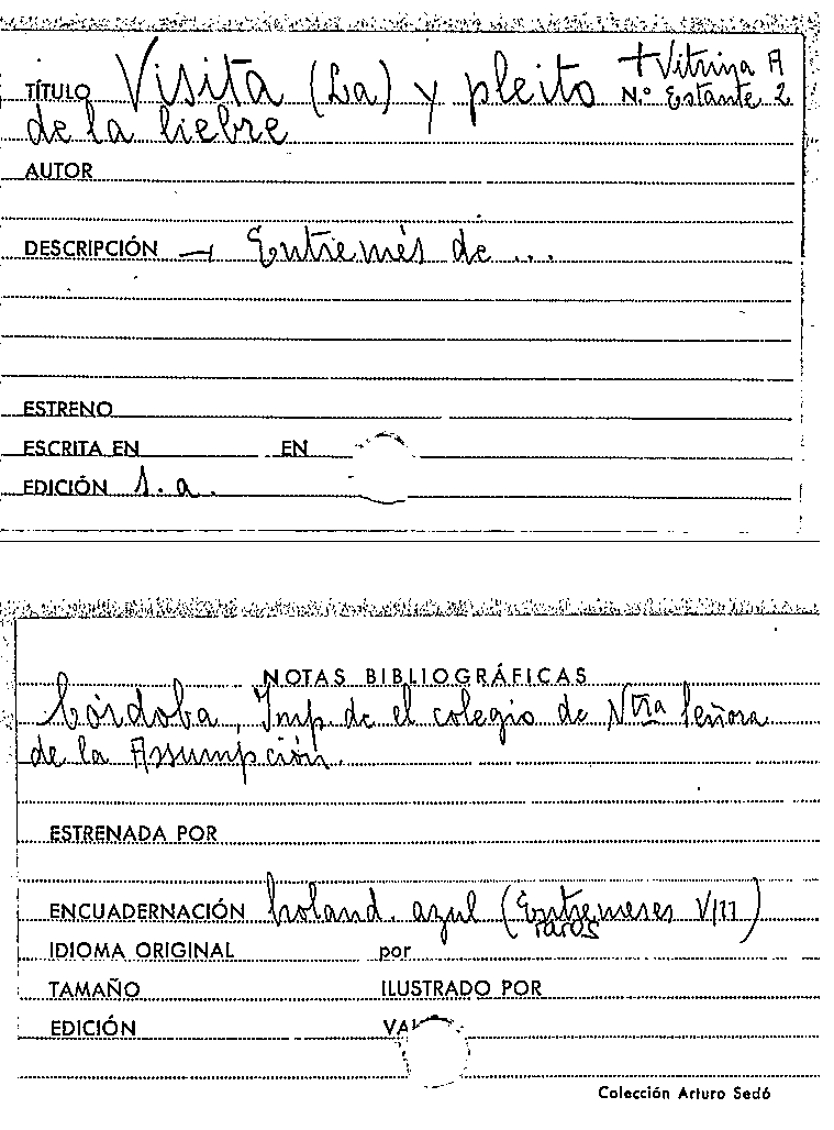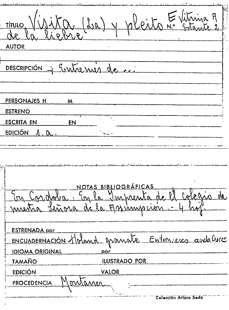 Otro título: - La visita, y pleito de la liebre