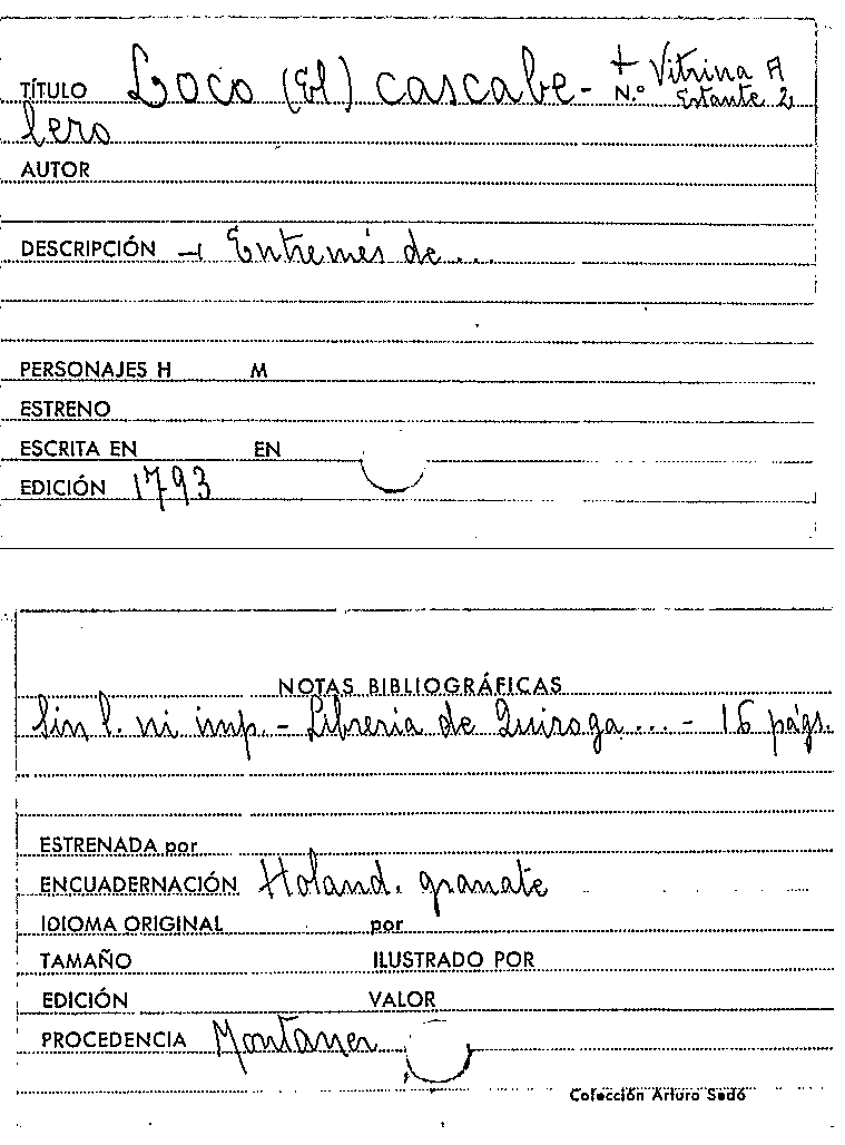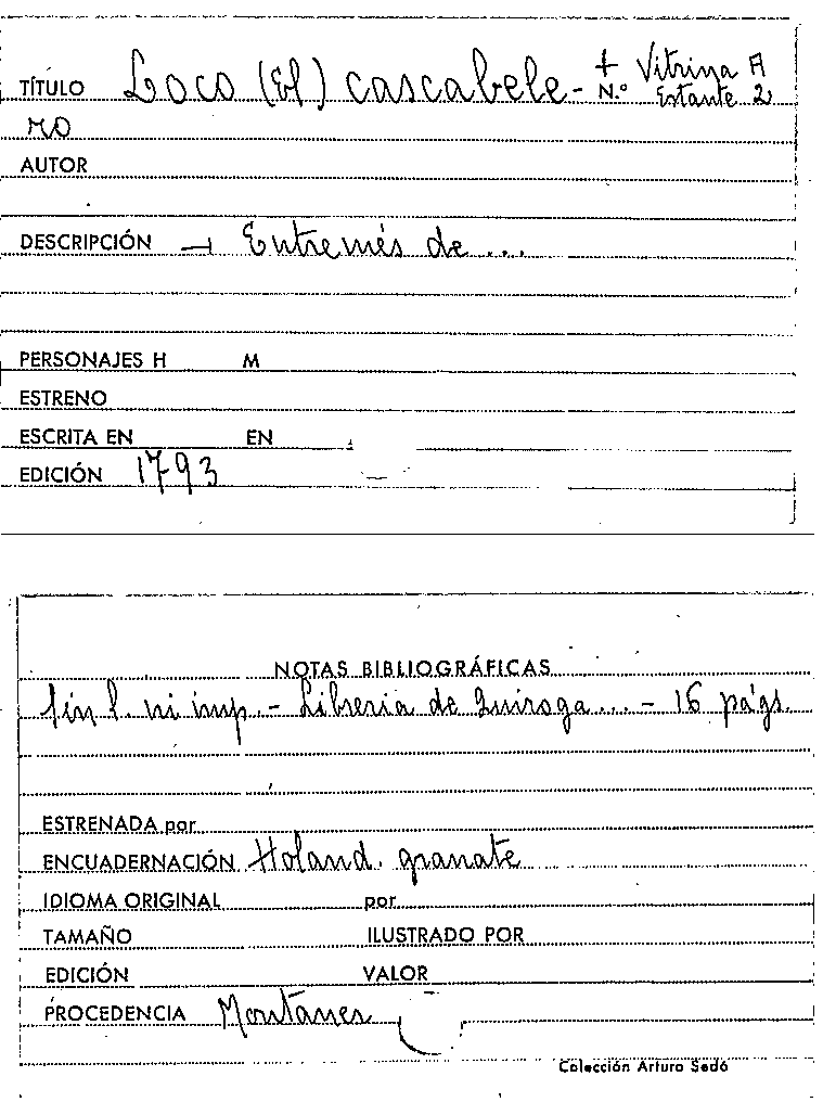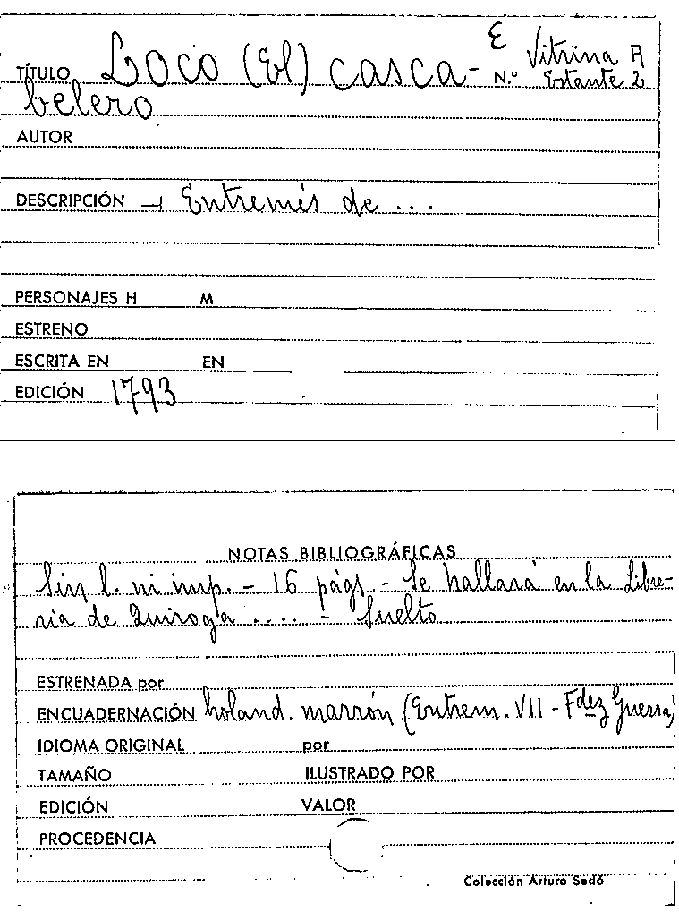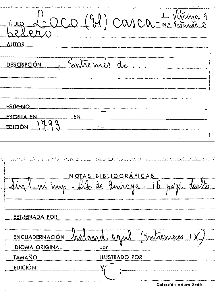 Publication details: [Madrid] : se hallara en la libreria de Quiroga, con otros vários, comedias antiguas, y nuevas ; autos, sainetes, entremeses y tonadillas, año 1793